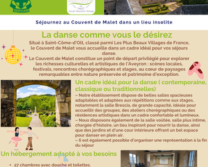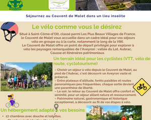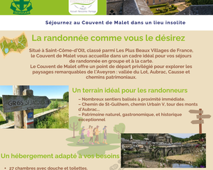 N'hésitez pas à nous contacter pour plus de renseignements sur les disponibilités, les tarifs, les prestations ainsi que les équipements, au 05.65.51.03.20 ou contact@couventdemalet.fr