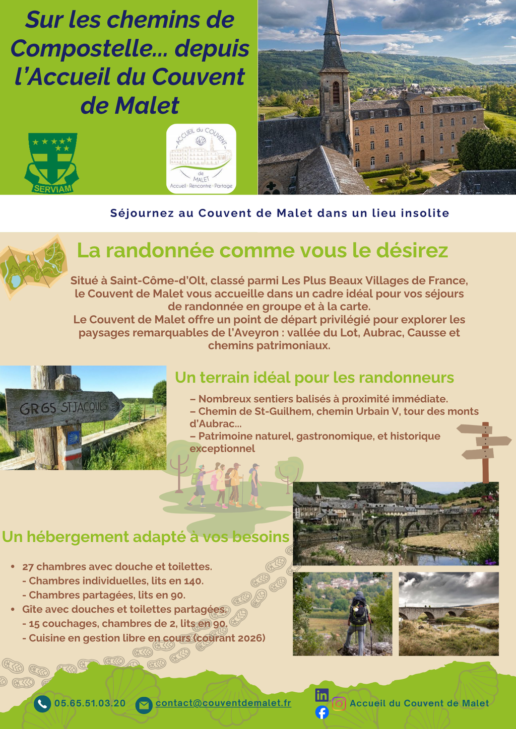 Sur les chemins de Compostelle... depuis l’Accueil du Couvent de Malet Découvrez notre nouvelle plaquette dédiée à la randonnée et préparez votre prochaine aventure en pleine nature ! Partager 23 février 2026
