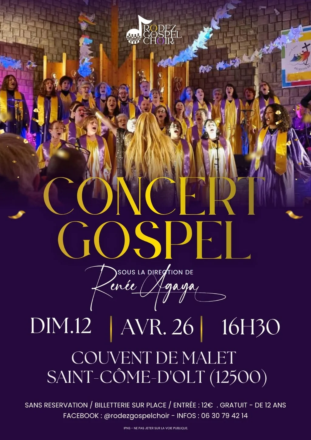 Concert Gospel à l'Accueil du Couvent de Malet L’accueil du Couvent de Malet a le plaisir de recevoir le chœur RODEZ GOSPEL CHOIR pour un concert exceptionnel dans notre chapelle le dimanche 12 avril à 16h30 à l’Accueil du Couvent de Malet. Infos sur l’affiche. Partager 1 avril 2026
